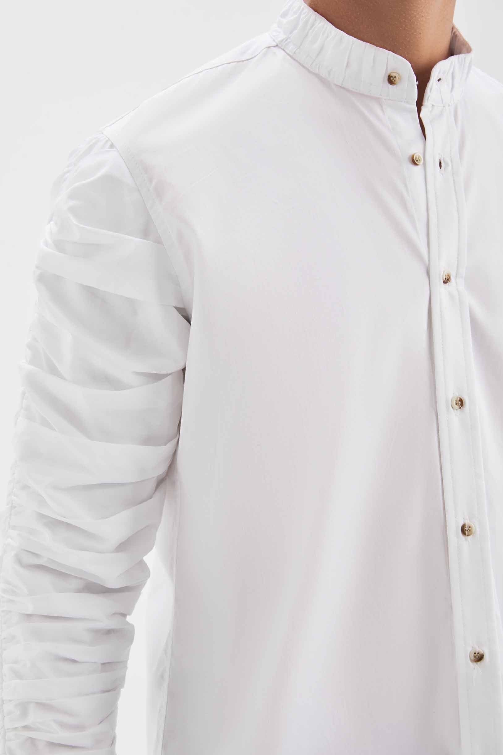 Cut from premium Egyptian cotton this white shirt is made to look different with the gathering affect on the sleeves.